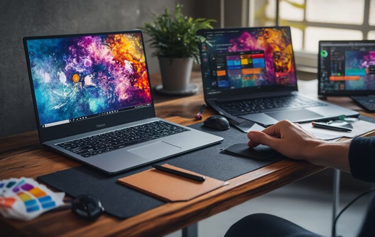 - CPU & GPU – Wähle eine starke Mehrkern-CPU und eine GPU mit ausreichend VRAM für Beschleunigung in Bildbearbeitung und 3D-Workflows; das ist entscheidend, wenn du ein Gaming-Notebook fürs Grafikdesign und schwere Projekte nutzt.